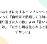 つぶやきに対するインプレッションって『自転車で熱唱してる時に通り過ぎた人の数』よね「言い得て妙」「だから可視化されると恥ずかしい」
