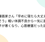 漫画家さん「早めに寝たら大丈夫そう」軽い体調不良から一気に調子が悪くなり、心筋梗塞だった話