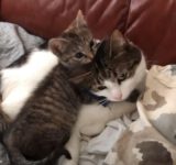 子猫「遊んでー」のんびり昼寝をしたいパパを邪魔する(動画)
