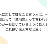 人に対して嫌なこと言う人は、一周回って『意地悪』って言われるのが一番効いているように見える「これ良い伝え方だと思う」
