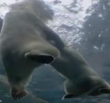 「白クマの泳ぐところを下から見ると、こうなっているのか…」(動画)