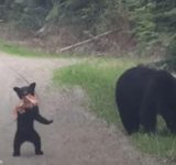 クマの赤ちゃんが…突然のカニ歩き!?(動画)