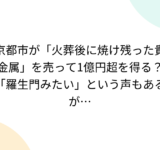 京都市が「火葬後に焼け残った貴金属」を売って1億円超を得る?「羅生門みたい」という声もあるが…