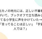 元カノの地元には、正しい不審者がいて、ブックオフで立ち読みしてる小学生に声をかけていた→「言ってることは正しい」「宇宙人では?」