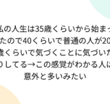 私の人生は35歳くらいから始まったので40くらいで普通の人が20歳くらいで気づくことに気づいたりしてる→この感覚がわかる人は意外と多いみたい