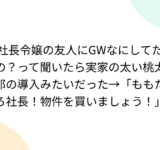 社長令嬢の友人にGWなにしてたの?って聞いたら実家の太い桃太郎の導入みたいだった→「ももたろ社長!物件を買いましょう!」