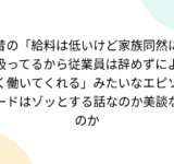 昔の「給料は低いけど家族同然に扱ってるから従業員は辞めずによく働いてくれる」みたいなエピソードはゾッとする話なのか美談なのか