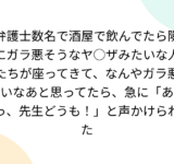 弁護士数名で酒屋で飲んでたら隣にガラ悪そうなヤ○ザみたいな人たちが座ってきて、なんやガラ悪いなあと思ってたら、急に「あっ、先生どうも!」と声かけられた