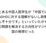 とある中国人医学生が「中国ではADHDに対する理解がないし政策も不十分です」といっていたがその問題を解決する方向性がマジ中国の発想だった