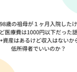 98歳の祖母が1ヶ月入院したけど医療費は1000円以下だった話→資産はあるけど収入はないから低所得者でいいのか?