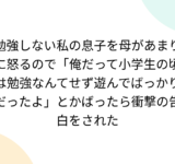 勉強しない私の息子を母があまりに怒るので「俺だって小学生の頃は勉強なんてせず遊んでばっかりだったよ」とかばったら衝撃の告白をされた