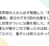法学部の人なら必ず勉強した『尊属殺』実父の子を5回の出産をした女性がついに父親を殺した。弁護士が親子二代で戦ったのは知ってたけど、養子とは知らなかった