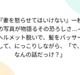 『妻を怒らせてはいけない』一枚の写真が物語るその恐ろしさ…→ ヘルメット脱いで、髪をバッサーして、にっこりしながら、「で、なんの話だっけ?」