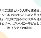 「内定辞退という大事な連絡をメール一本で終わらされたと怒った話」に記録が残るから大事な連絡ほどメールがいい話…呼び出しの断り方やその理由も