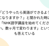 「どうやったら英語ができるようになりますか?」と聞かれた時は「NHK語学講座を始めてください。数ヶ月で変わります」といつも答えている