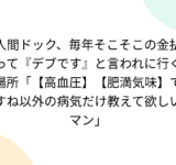 人間ドック、毎年そこそこの金払って『デブです』と言われに行く場所「【高血圧】【肥満気味】ですね以外の病気だけ教えて欲しいマン」