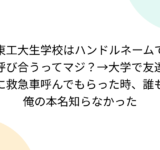 東工大生学校はハンドルネームで呼び合うってマジ?→大学で友達に救急車呼んでもらった時、誰も俺の本名知らなかった