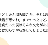 「どしたん悩み聞こか、それは彼氏君が悪いわ」までやったけど、童貞だった僕はそんな文化があるとは知らずやらかしてしまった話