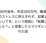 30代後半、年収300万円。職場のストレスに耐えきれず、起業したいです。という相談に「転職したら?」と提案したらマジギレされた話
