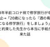 3年半前コロナ禍で修学旅行が中止→「20歳になったら『酒の肴になる修学旅行』をしましょう」と約束した先生から本当に手紙が来た話
