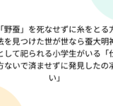「野蚕」を死なせずに糸をとる方法を見つけた世が世なら蚕大明神として祀られる小学生がいる「仕方ないで済ませずに発見したの凄い」