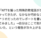 「NTTを騙った特殊詐欺電話がかかってきたが、なかなか巧妙なシナリオだったのでレポートを書いてみました」→自分はここで気付いた、という報告が次々上がる