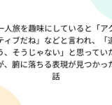 一人旅を趣味にしていると「アクティブだね」などと言われ、「違う、そうじゃない」と思っていたが、腑に落ちる表現が見つかった話