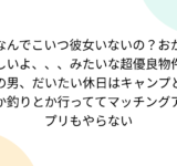 なんでこいつ彼女いないの?おかしいよ、、、みたいな超優良物件の男、だいたい休日はキャンプとか釣りとか行っててマッチングアプリもやらない