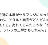 近所の本屋がセルフレジになってから、アダルト商品がどんどん増えてる。売れてるんだろうな「セルフレジの正解かもしれんw」