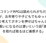 コマンドRPGは舐められがちだが、お年寄りや子どもでもゆっくり考えてボタンを押せばちゃんと戦いになるのは凄いという話「歳を取れば取るほど痛感する」