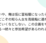 いや、俺は仮に富裕層になったらどこぞの知らん女を高級鮨に連れていくなどしない。この企画をやる→続々と参加希望があらわれる
