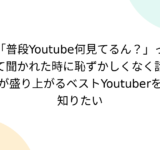 「普段Youtube何見てるん?」って聞かれた時に恥ずかしくなく話が盛り上がるベストYoutuberを知りたい