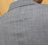 成人式のスーツにしつけ糸がついていたので切ろうとしたら息子に「マルジェラだから」と怒られた「スーツ版ダメージジーンズがあったなんて」