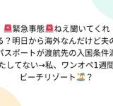 🚨緊急事態🚨ねえ聞いてくれる?明日から海外なんだけど夫のパスポートが渡航先の入国条件満たしてない→私、ワンオペ1週間ビーチリゾート🏝️?