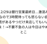 12/29は銀行営業最終日…激混みなので3時間待っても怒らない自信があるやつだけ来店してもいいよ!→不要不急の人は今日はやめとこ