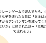 クレーンゲームで遊んでたら、小さな子を連れた女性に「お金は出すからアンパンマンを取ってくれないか」と頼まれた話→「走馬灯で流れそう」