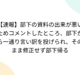 【速報】部下の資料の出来が悪いためコメントしたところ、部下から一通り言い訳を投げられ、そのまま修正せず部下帰る