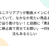 ユニクリアプリが動画メインになっていて、なかなか見たい商品まで辿り着けない!と話題に「素直に静止画で見せてお願い」→対処法もあるらしい