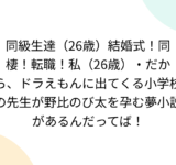 同級生達(26歳)結婚式!同棲!転職!私(26歳)・だから、ドラえもんに出てくる小学校の先生が野比のび太を孕む夢小説があるんだってば!