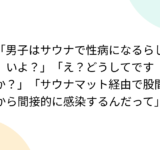 「男子はサウナで性病になるらしいよ?」「え?どうしてですか?」「サウナマット経由で股間から間接的に感染するんだって」