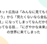 ネット広告は「みんなに見てもらう」から「見たくないなら金払え」になってしまってなんだかなってなる話…『にぎやかな未来』の世界に来てしまった