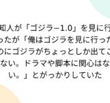 知人が「ゴジラ−1.0」を見に行ったが「俺はゴジラを見に行ったのにゴジラがちょっとしか出てこない。ドラマや脚本に関心はない。」とがっかりしていた