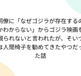 同僚に「なぜゴジラが存在するのかわからない」からゴジラ映画を観られないと言われたが、そいつは人間椅子を勧めてきたやつだった話