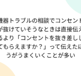 機器トラブルの相談でコンセントが抜けていそうなときは直接伝えるより「コンセントを抜き差ししてもらえますか?」って伝えたほうがうまくいくことが多い