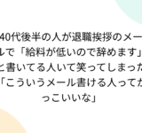 40代後半の人が退職挨拶のメールで「給料が低いので辞めます」と書いてる人いて笑ってしまった「こういうメール書ける人ってかっこいいな」