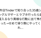 昨日Tinderで知り合った35歳シングルマザーとラブホ行ったら部屋入るなり異様な行動に出て怖かった→せめて帰り際にやってくれ…