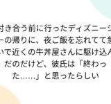 付き合う前に行ったディズニーシーの帰りに、夜ご飯を忘れてて急いで近くの牛丼屋さんに駆け込んだのだけど、彼氏は「終わった……」と思ったらしい