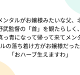 メンタルがお嬢様みたいな父、北野武監督の「首」を観たらしく、真っ青になって帰って来てメンタルの落ち着け方がお嬢様だった「おハーブ生えますわ」