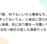 『朝、何でもいいから簡単なモノ作っておいてよ』と彼氏に言われた後輩、机に折り鶴を一羽置いて出社→彼氏の返しも強者だった