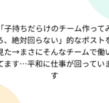 「子持ちだらけのチーム作ってみろ、絶対回らない」的なポストを見た→まさにそんなチームで働いてます…平和に仕事が回っています